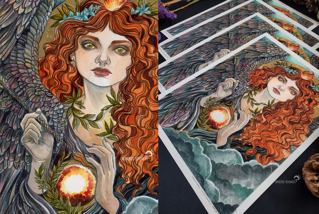 - L’original est ma propre création portant le même titre, une illustration réalisée à l’encre aquarelle et dorée sur papier